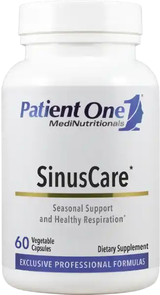 Patient One SinusCare supplies a synergistic combination of micronutrients, bioflavonoids, enzymes, amino acids and herbs that provide multi-faceted support for immune and respiratory function. This formula provides natural support and quick relief for unpleasant reactions associated with immune hypersensitivity and histamine release, including watery eyes, sneezing, runny nose and congestion.